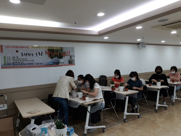 "도전하는 우리 챌린지 업" 프로그램은 양성평등기금 사업의 일환으로 사회참여가 어려운 여성장애인과 가족의 역량개발 및 사회활동 참여를 지원하는 사업입니다. 5월~10월까지 총 15회기로 진행되었고 정리수납교육을 통해 전문자격증을 취득하였고 여가활동 및 힐링을 위한 원예활동, 소그룹 나들이를 지원하였습니다. 다양한 주제로 활동하며 사회활동 참여 및 개인의 역량을 개발하는 기회가 되었습니다. 함께 참여한 모든 문들과 프로그램을 지원해 주신 강사님들께 감사드립니다.