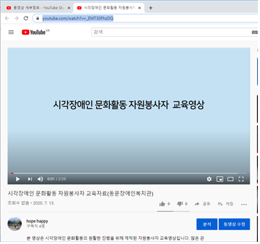 지역·권익·시각 시각장애인 문화활동 자원봉사자 교육영상