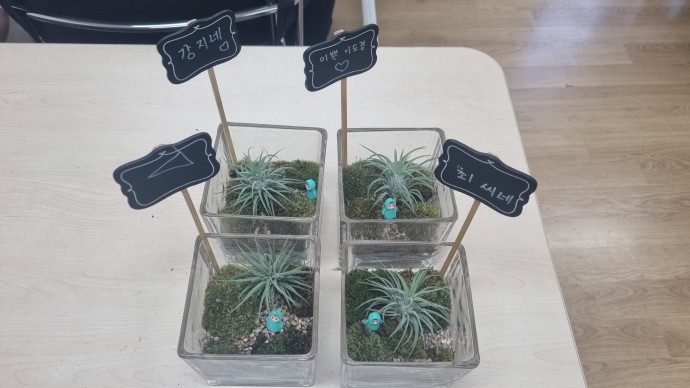 점토, 나무, 돌, 양말목, 드라이플라워, 이끼, 자갈 등 다양한 재료의 촉감을 느끼며 아름다움 작품을 만드는 시간은 정말 즐겁고 보람 찬 시간입니다.
