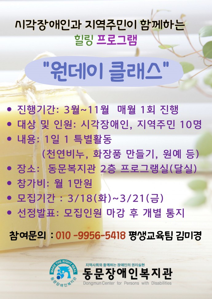 (3월26일 수요일 10시 30분 비누공예 진행 예정)