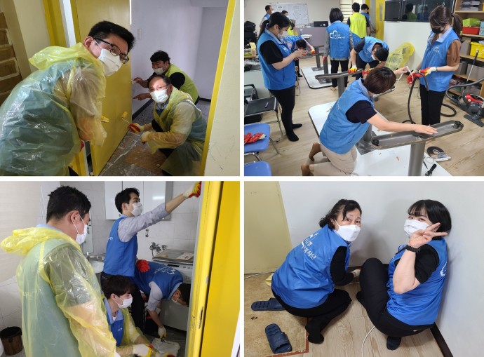 이번 봉사활동에서 우리은행 직원분들은 페인트칠, 바닥 마감처리 등 평소 환경개선이 필요한 곳에 일손이 되어 제 일처럼 열심히 참여해 주셨습니다. 무더운 여름날씨 속 연신 구슬땀을 흘리며 코로나19로 휴관중인 복지관에 이용자분들을 맞이하기 위한 준비에 함께해 주셨습니다.