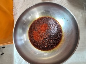 6. 불을 끄고 준비해둔 꽈리고추를 넣어 잔열로 익힌다