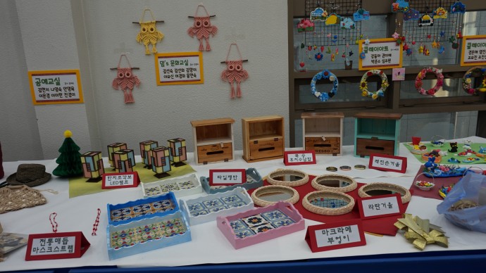 강당 로비에 전시된 작품들의 프로그램은 ‘클레이아트 A/B 반, 공예교실, 맘’s 문화교실 , 평생교육반-원예교실, 쿠킹&베이킹, 아트 스토리’이며, 무대공연에 참여한 프로그램은 ‘동문 컵타’, ‘평생교육반-컵타’, ‘동문 태권도단’, ‘동문엔터프라이즈 태권도단’, ‘쉘위댄스’, ‘모아음악’이다.