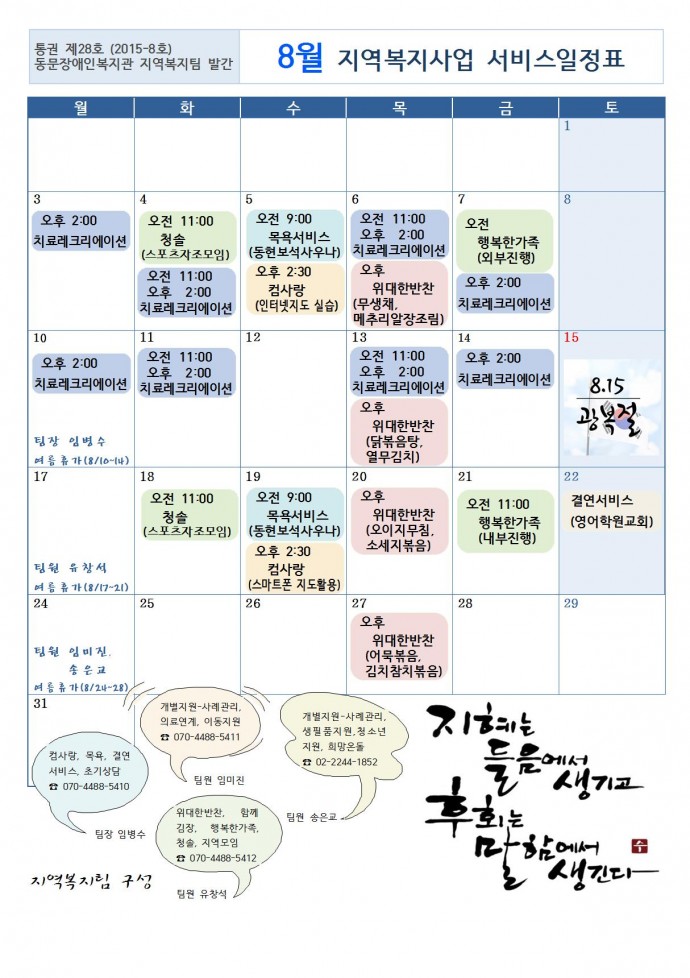 지역복지 지역복지팀 8월 프로그램 안내1 페이지 정보 작성자임미진 댓글 0건 조회 26,361회 작성일 15-08-06 19:52 본문 목록 이전글지역복지팀 8월 프로그램 안내2 15.08.06 다음글돌봄가족 휴가제 추가모집(개인돌봄 지원 양식 첨부) 15.08.03 댓글목록 댓글목록 등록된 댓글이 없습니다.