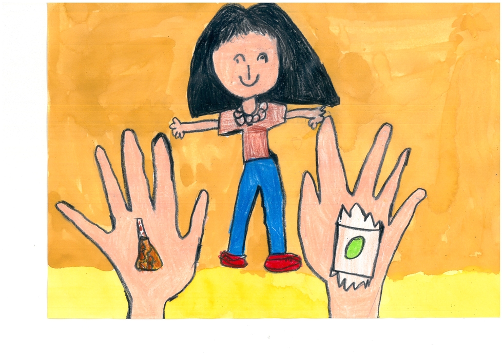 먹거리 소원 그리기 작품을 3층 게시 공간에 전시하고 있습니다.