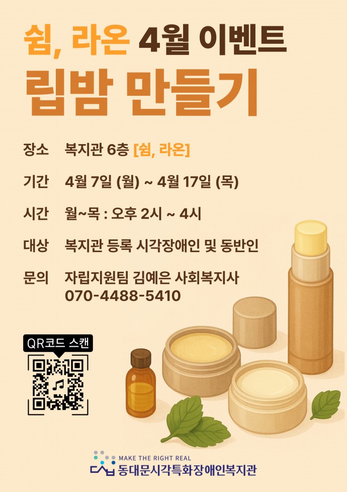 평생·가족·직업 쉼라온-4월이벤트 (립밤만들기)